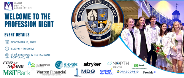 The Maine Dental Association is thrilled to host our 5th Annual Welcome to the Profession Night. This FREE event is open to all UNE dental and dental hygiene students and faculty, and MDA members, featuring an Ask Me Anything Q&A Panel. The MDA Continuing Education & Events Committee invites you to join this event as we celebrate the next generation of professionals and leaders in Maine’s oral health. To sponsor or RSVP click "Learn More".png?sfvrsn=7e9325af_1)